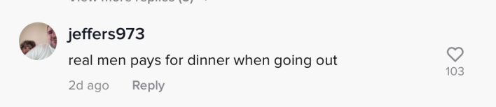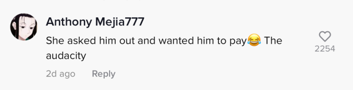 "She asked him out and wanted him to pay," on commenter wrote. "The audacity."