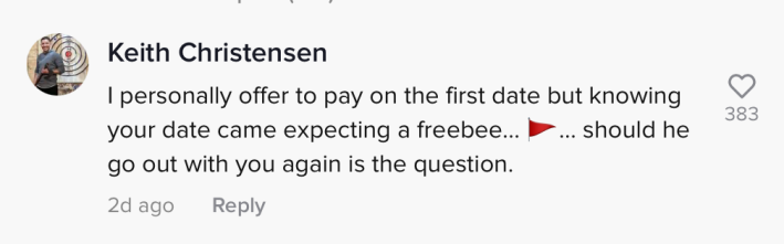 Regardless of whether or not she asked him out, some commenters felt it was inappropriate to expect the man to pay for their dinner. "I personally offer to pay on the first date but knowing that your date came expecting a freebie... should he go out with you again is the question," another commenter wrote.