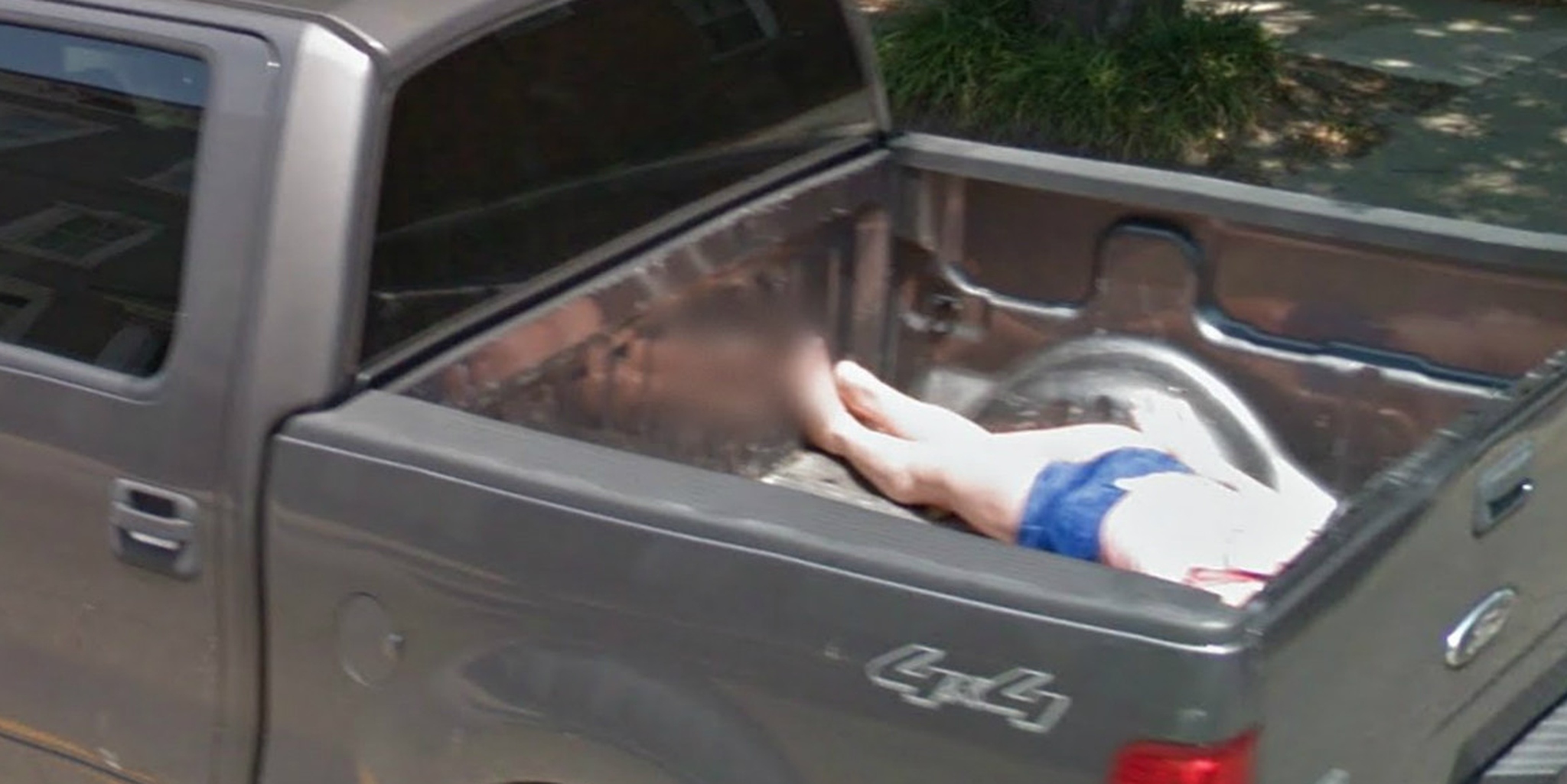 There are probably all kinds of reasons for why what appears to be a headless woman with her feet turned at bizarre opposite angles seems to be lying in the back of a Ford truck that Reddit spotted on Google Street View this weekend.