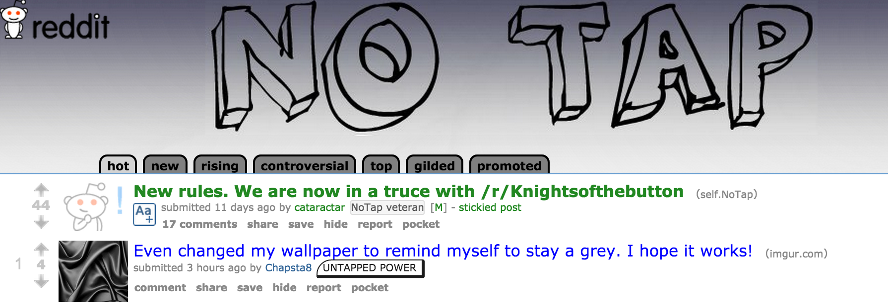 We're not the boss of you. In you'd like to abstain from The Button, you can find some solidarity in /r/NoTap, a subreddit "developed to help people in their non-pressing."