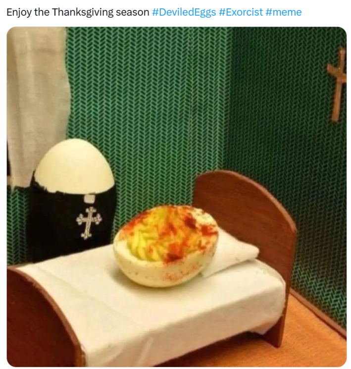 As Thanksgiving approaches, there’s one dish that’s consistently brought up in memes: deviled eggs. A popular side dish for holidays such as Easter and Thanksgiving, it is a common staple that people constantly joke about because you can never eat just one. Its popularity as a side dish, as well as a meme, rivals that of the cranberry sauce, though for very different reasons.