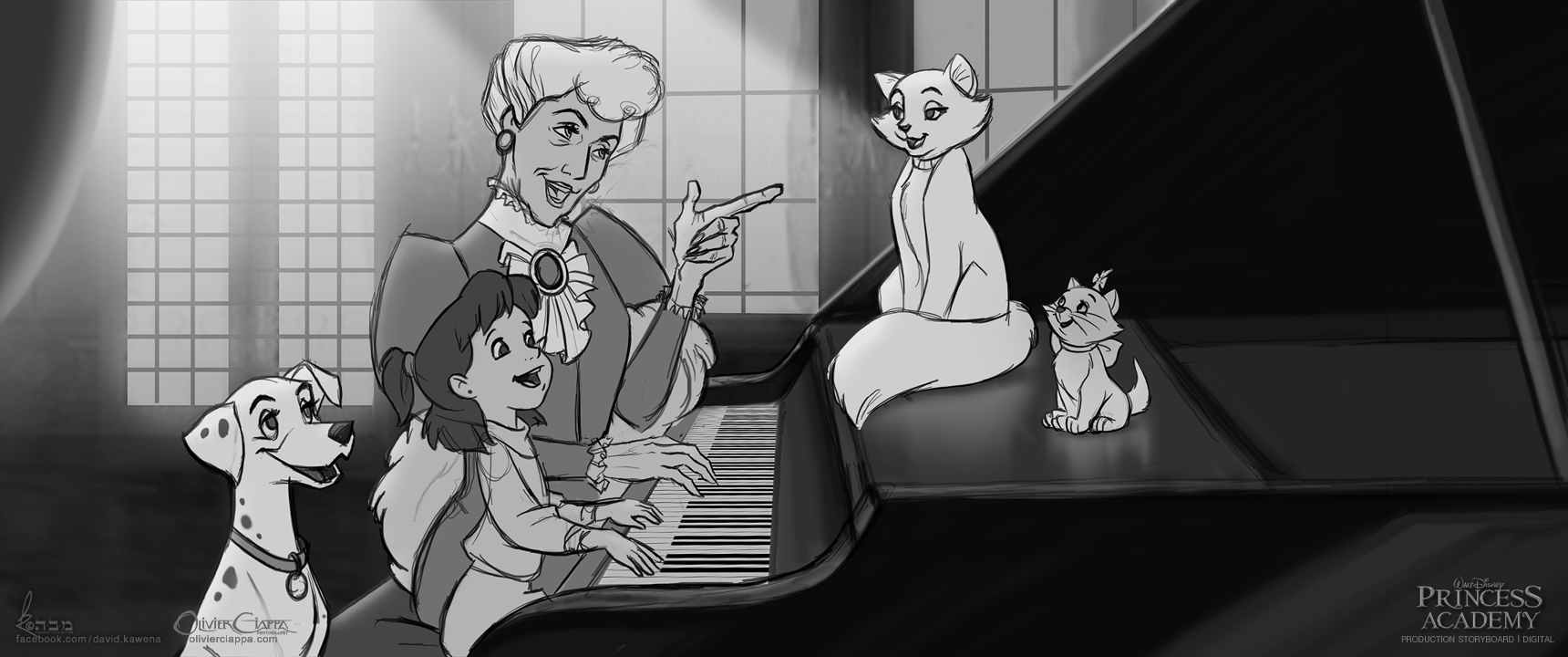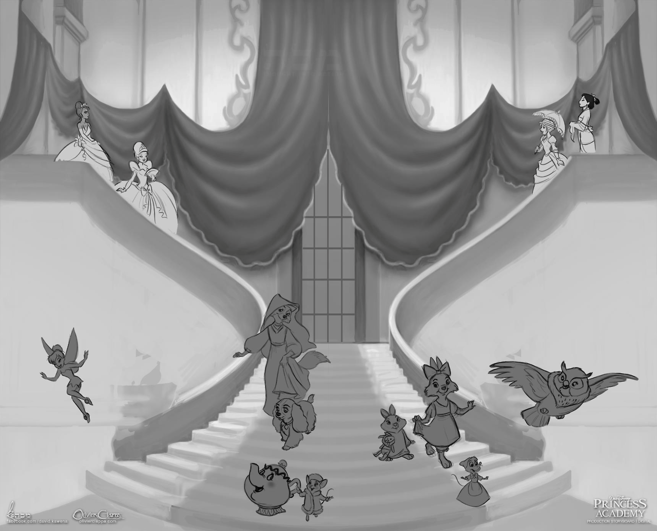 In "Disney's Princess Academy", I wanted to create something that would bring back the somewhat lost respect for hand drawn animation as an art form. By doing so, we decided that the entire look and feel of the short movie will be inspired by the worlds greatest works of art.