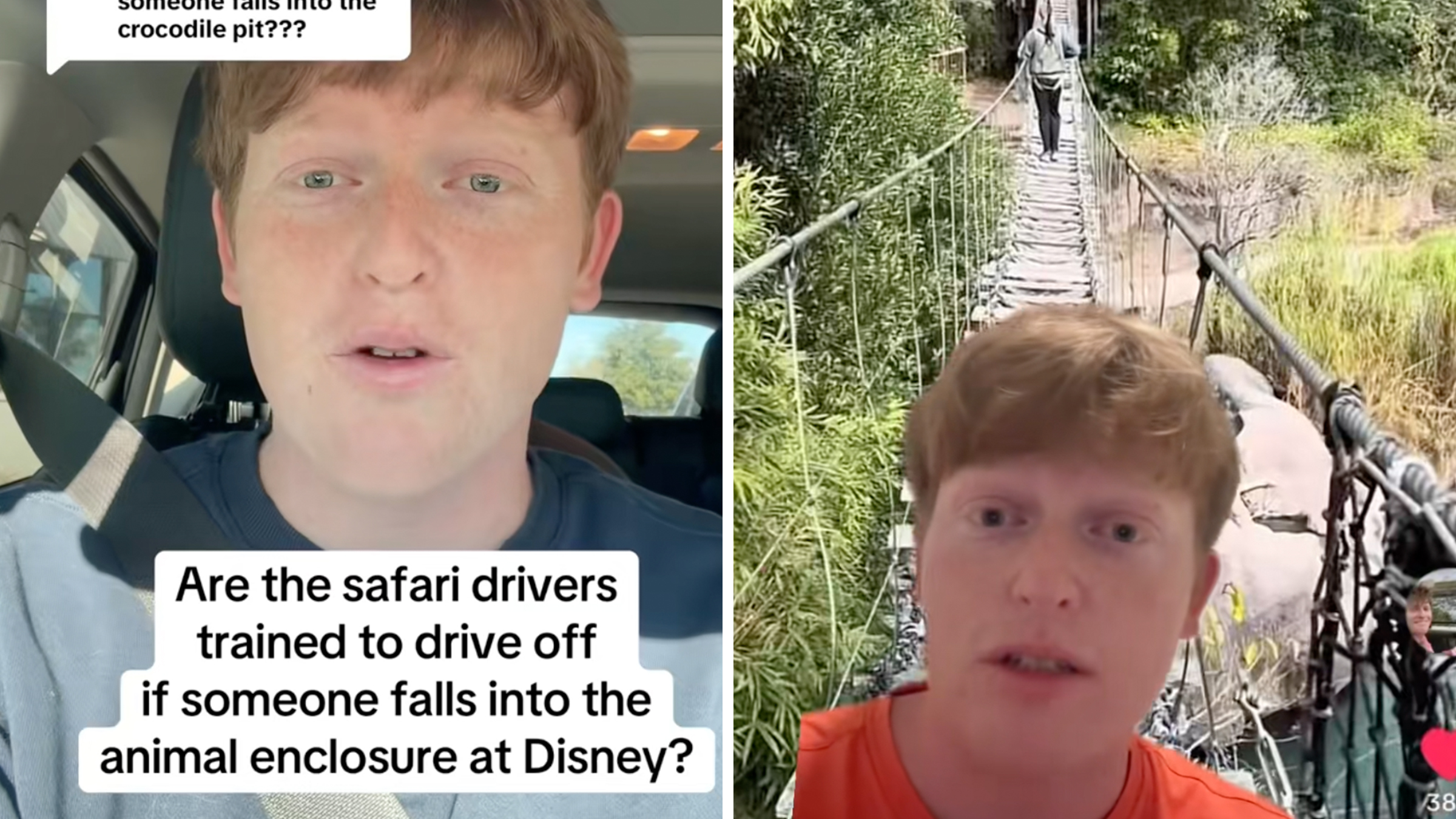 The former driver described walking over the crocodile bridge at Kilimanjaro Safaris in a harness. It was a controlled experience, but even he was scared of the crocs.