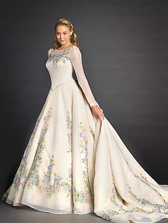 Alfred Angelo Bridal can help make dreams come true with its line of Disney-inspired wedding dresses. The retailer has a Disney Fairy Tale Bridal collection with new gowns for 2015 that take inspiration from Frozen, Sleeping Beauty, The Princess and the Frog, and more Disney films. Considering the massive success of Frozen and its hit song “Let it Go” it’s probably no surprise that Elsa has inspired a snowy white gown. One of the most enchanting dresses in the line though is a limited-edition dress inspired by the one seen in Disney’s latest live-action Cinderella film.