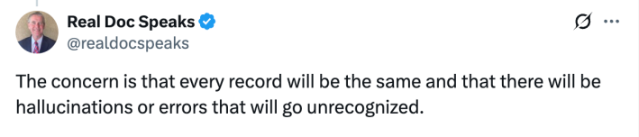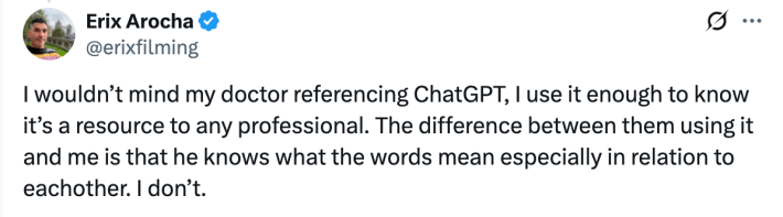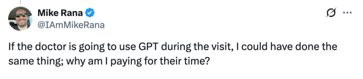 There’s also been the suggestion that doctors using ChatGPT and the like to cut down on administrative tasks like filling out charts is ultimately a good thing, as it could allow them to spend more time actually seeing patients.