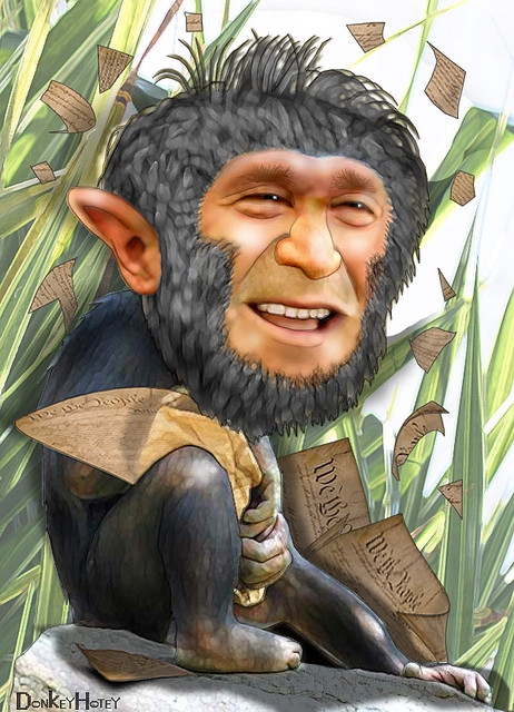 DonkeyHotey’s perhaps best known for his caricature Prresident George W. Bush, who the artist claims “practiced crony capitalism and would sacrifice anyone or anything to achieve their ends.” The illustration portrayed Bush as a chimpanzee, tearing up the Constitution. It stirred up quite a bit of controversy and taught DonkeyHotey a valuable lesson about the power of art and perceived stereotypes.
