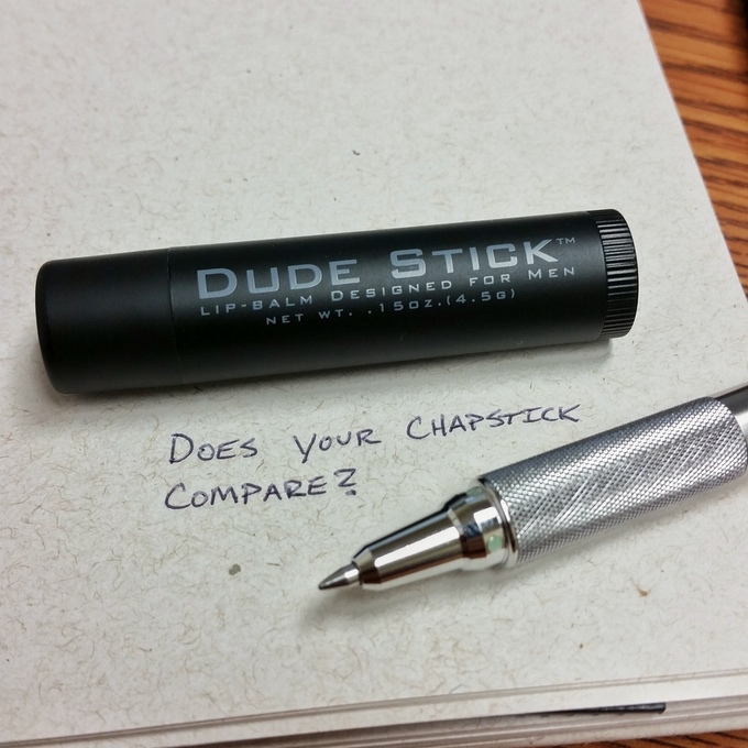 Much like how chapstick provides a protective barrier between your lips and the elements, Dude Stick provides a protective barrier between you and any hint of femininity. Just swipe that Dude Stick across your mouth, allowing its sticky white substance to collect on your lips.