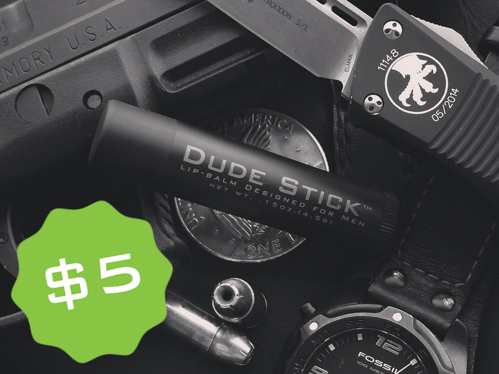 Dude Stick must be a parody of this embarrassing genre of gendered marketing. Made from ingredients like cocoa butter, peppermint oil, and beeswax, it serves the same function as any other natural lip balm. The key difference is that it's tactical as shit.
