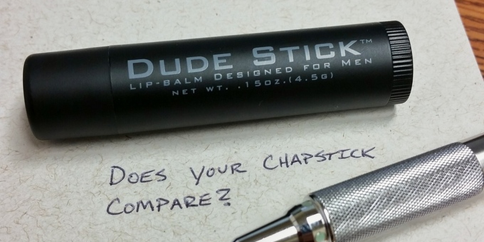 Dude Stick's Kickstarter page highlights its ideal design for Everyday Carry—the Internet phenomenon where people (mostly guys) take carefully arranged photos of things they supposedly carry everyday, usually guns, multi-tools, moleskine notebooks, and matte black "tactical" products.