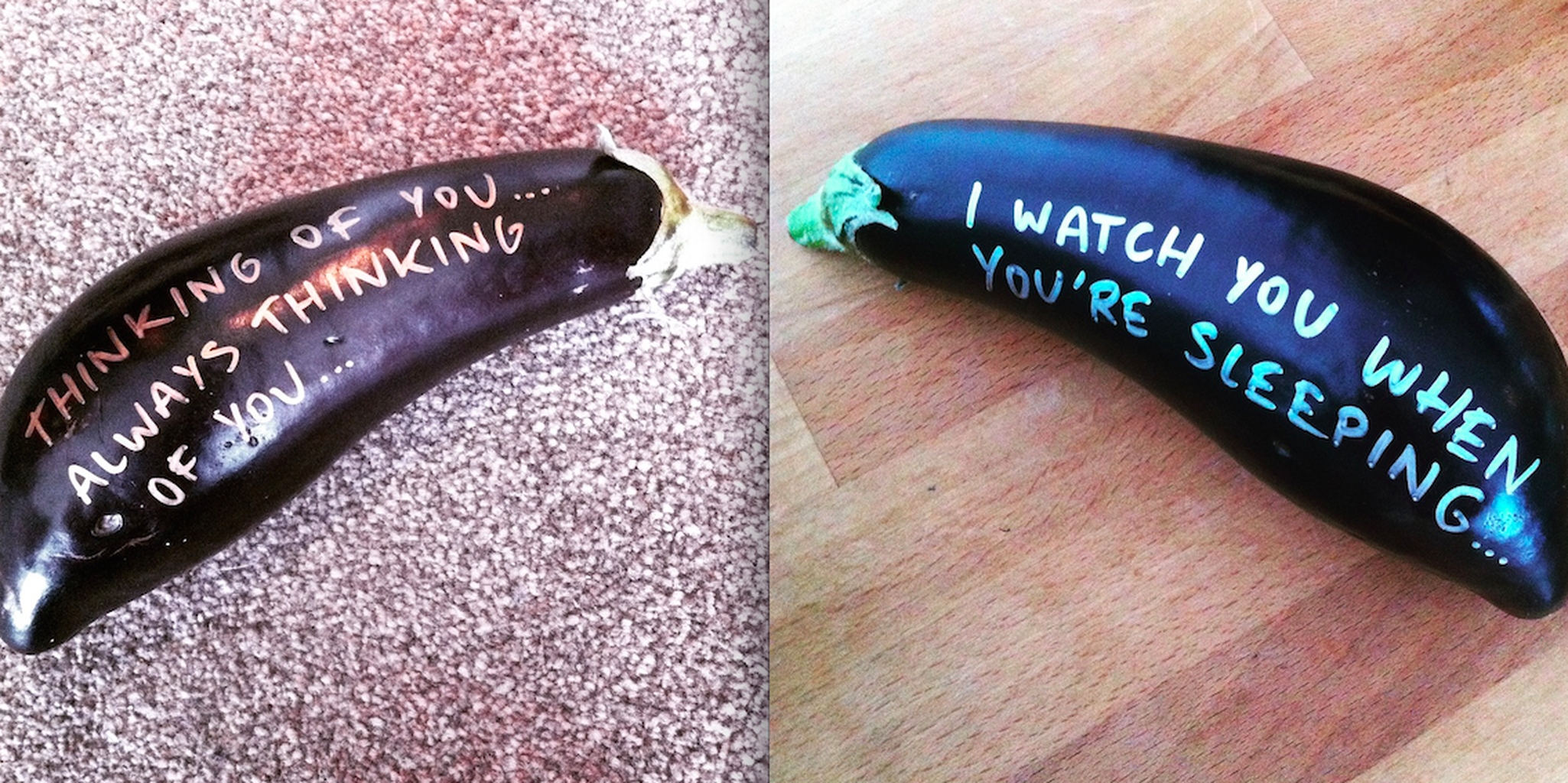 For the low cost of $9.99, Eggplantmail.com sends an anonymous package to the address of your choice. And when your love, or victim, opens the package they’ll be greeted by a very phallic-looking eggplant.