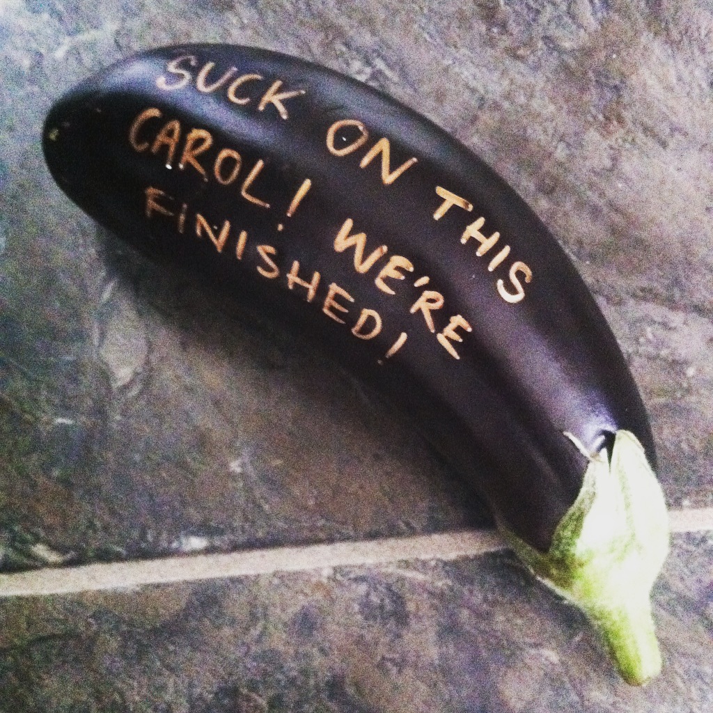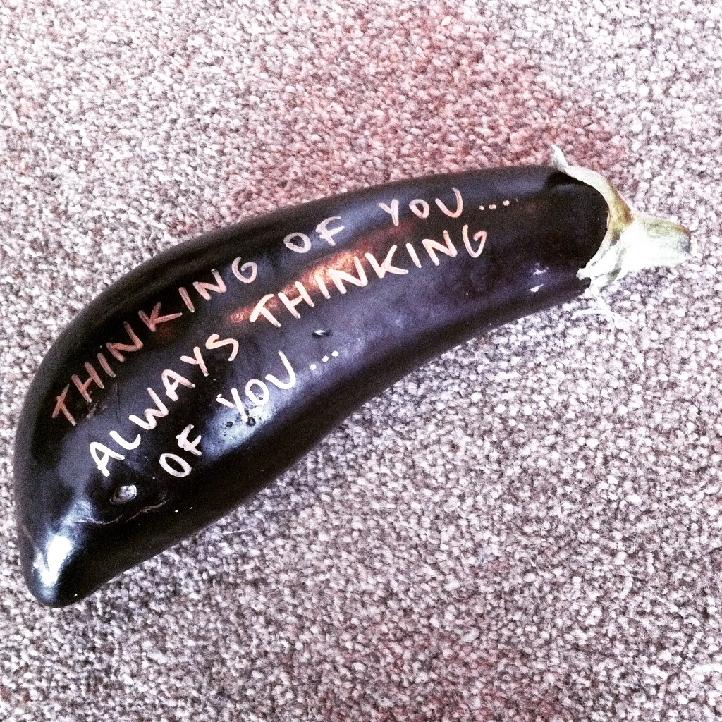 Well, yes, that’s exactly what we mean. It’s literally just an eggplant. But they will spruce it up with a marker and message of your choice.