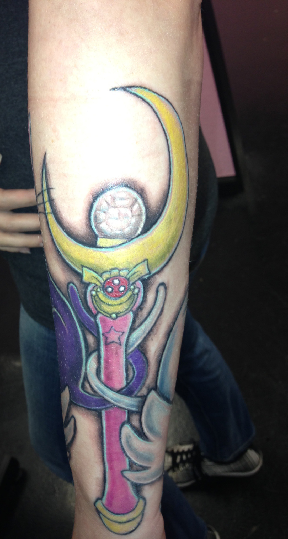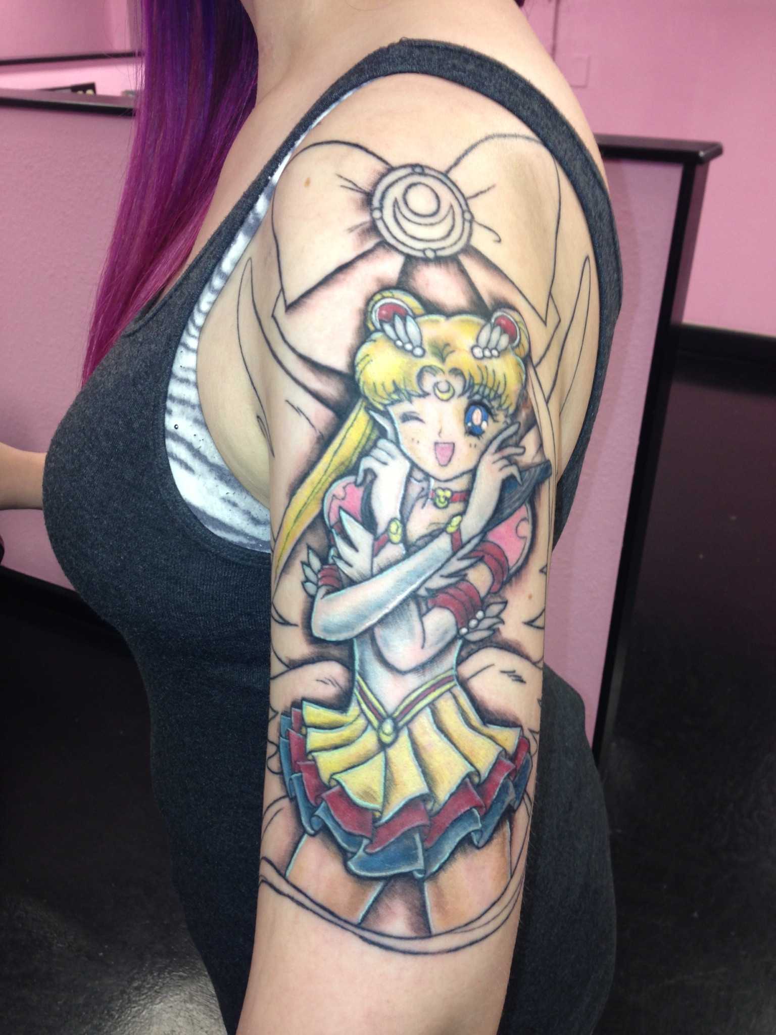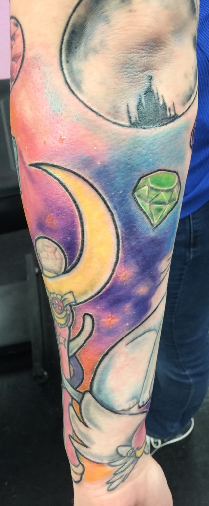 "We just started talking about the show," Erika told the Daily Dot. "We were both huge fans! I mentioned how I saw other Sailor Moon tattoos and that I'd love one as well. I have always wanted a sleeve, so it just fit to put those two together. She knows the show and the characters and I felt that she could put good detail into this."