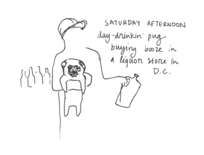 Andujar is the creator of the Tumblr blog Every Pug in New York, which features beautifully simple comics of pugs buying booze with their owner, grinning outside of a pet store, and licking Andujar's leg.