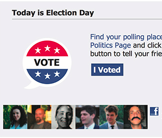 According to the UCSD press release, the message consisted of the ubiquitous button, a link to local polling places, a counter showing the number of Facebook users who had already voted, and the profile photos of as many as six friends who had already clicked “I’m voting.”