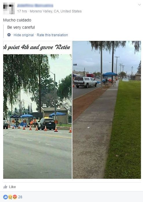 Vocativ found several online groups operating in areas of California, Texas, North Carolina, New York, Illinois, Tennessee, and Georgia. Users in these groups have shared information including whether there are checkpoints on local roads; photos and locations of pulled over police cars in certain areas; and advice on encounters with cops and U.S. Immigrations and Customs Enforcement (ICE). In one group, Retenes California, which counts more than 115,000 members on Facebook, users and administrators have recently posted tips for how to properly follow driving safety rules to avoid getting pulled over by the police.