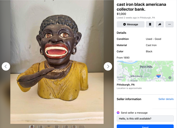Many of the racist items the Daily Dot found on Facebook Marketplace are labeled as antique (over 100 years old) or vintage (older than 20 years old).