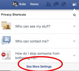 On desktop, log onto Facebook and go to the drop down menu in the righthand corner. Go to “More Settings.”