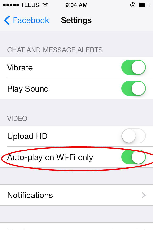 For iOS, hit the Settings icon on your homescreen. Scroll down until you see Facebook. Go into Facebook settings, and choose Video. There, you can toggle video auto-play off, though it only works when the phone is using data, not Wi-Fi.