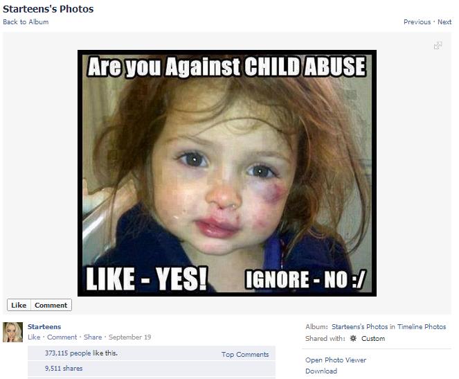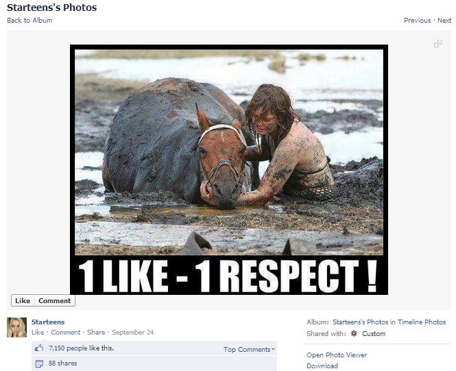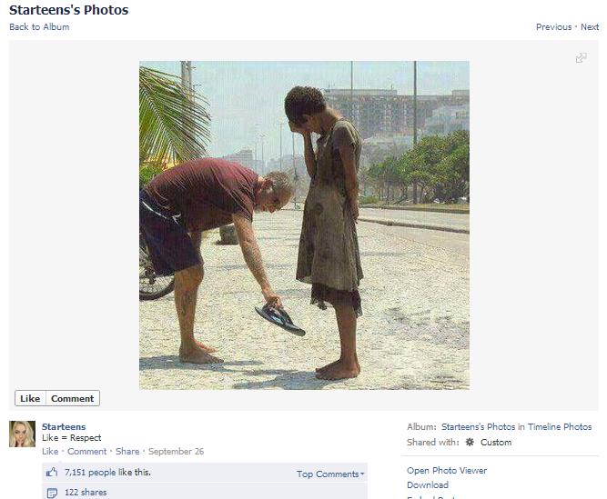 Since starting the page on July 11, Starteens has amassed 188,000 likes and 11.7 million people “talking about this.” The people behind Starteens have done this using self-promotion, jokes, and stolen images from around the Web (some are even blatant reposts). Yet it’s the demented form of slacktivism—the idea that liking something on Facebook or signing a digital petition actually makes a difference—that has really upset netizens.