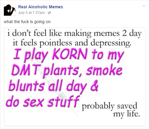 And now, it appears as if the social network is cracking down on some of its most anarchic and interesting group. That standard error message above now recurs often across the internet because Facebook recently deleted a number of notable and popular meme pages maintained by its alternative communities, including “Cabbage Cat,” “Gangster Popeye,” and, for a time, “I play KORN to my DMT plants, smoke blunts all day & do sex stuff.”