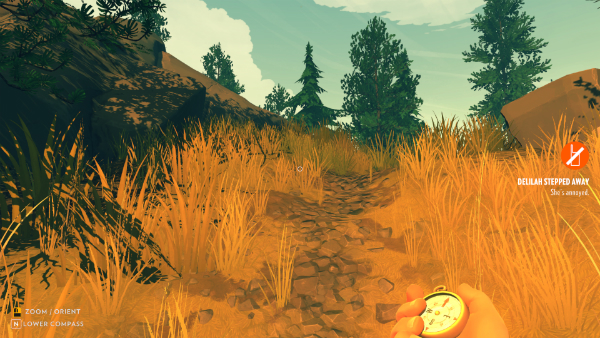 I never got over my reaction to these scenes. It might have been different if we ever learned anything about Delilah, like where she came from, or why she took such an isolated job, but Firewatch never divulges these details.