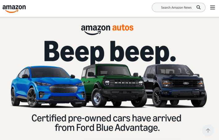 “By working with exceptional Ford dealers who share our commitment to customer service, we're creating a car buying experience that combines trusted vehicle certification with the convenience Amazon is known for," Amazon Auto global leader Fan Jin says.