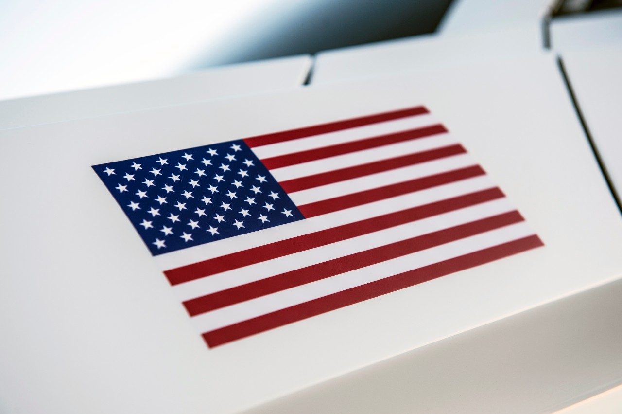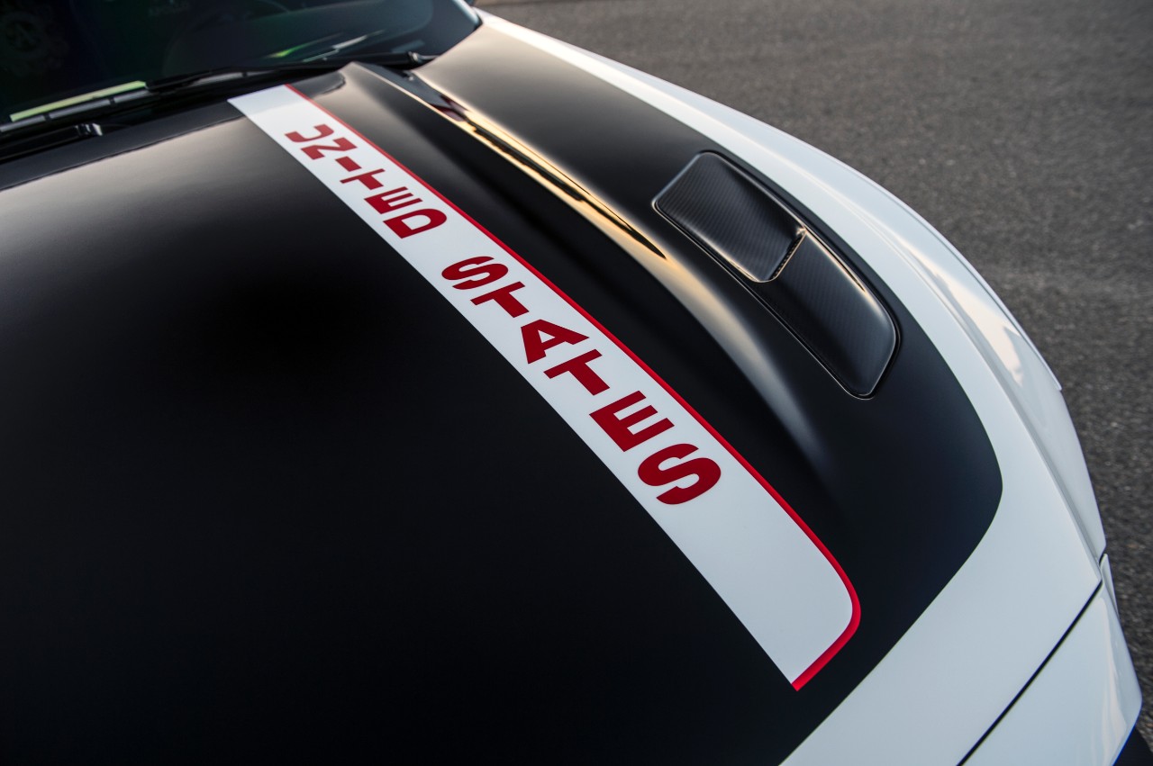 The 2015 Ford Mustang GT already has an extremely recognizable look to it, but this makeover will assuredly catch your eye if you see it rocketing down the street. Borrowing its scheme from the NASA Apollo program, it features a glossy white and black paint job. On the hood is a white strip that cuts through the black paint, with "United States" written in red.