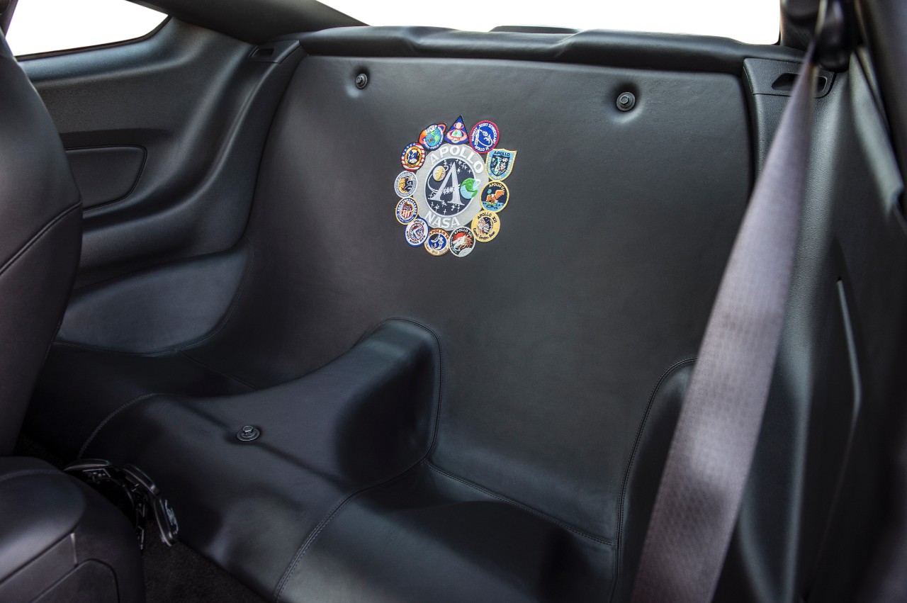 The Apollo Edition Mustang is also equipped with a carbon fiber front splitter, rear diffuser, rocker moldings, and accent treatments for a ready-for-space travel look. On the underbelly of the vehicle is LED lighting to "symbolize atmospheric re-entry.