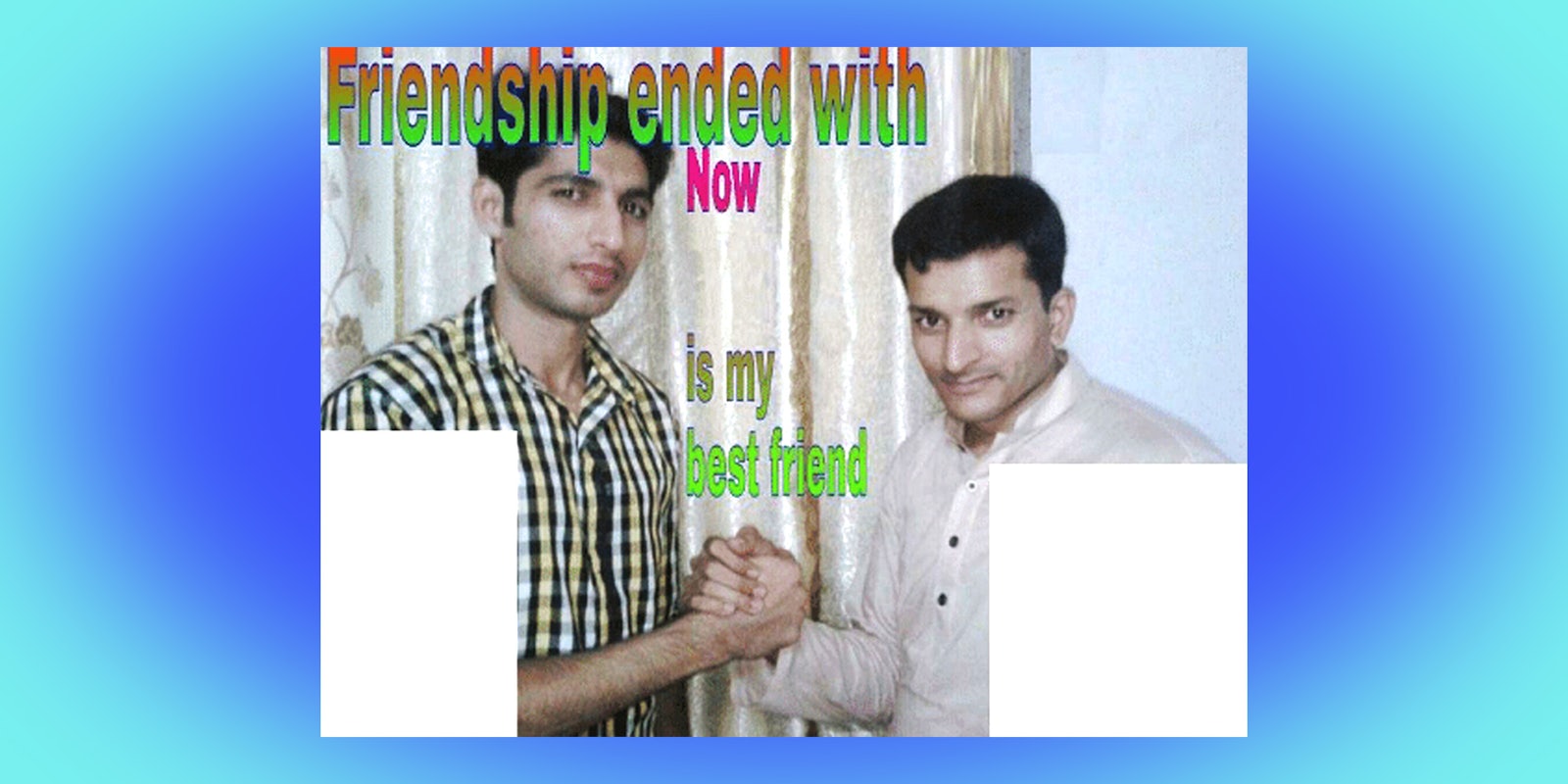 The "Friendship Ended With" meme stems from a photo of two young men shaking hands with two images of a third man who's been crossed out. The colorful graphic, created with Microsoft Paint, declares that a friendship with one of these people has ended and another has begun. Somehow, this private moment from Facebook became a massively popular meme in 2015.