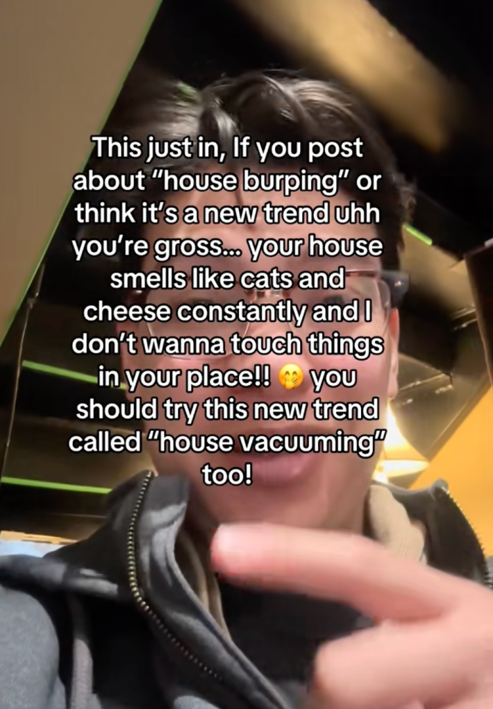 He's not the only one to critique the trend. In a clip shared on Jan. 23, 2026, Gen Z’er @nateeggnogs put creators on blast and accused house burpers of not knowing how to clean. He said, “If you post about ‘house burping’ or think it’s a new trend, uhh, you’re gross… you should try a new trend called ‘house vacuuming’ too.”