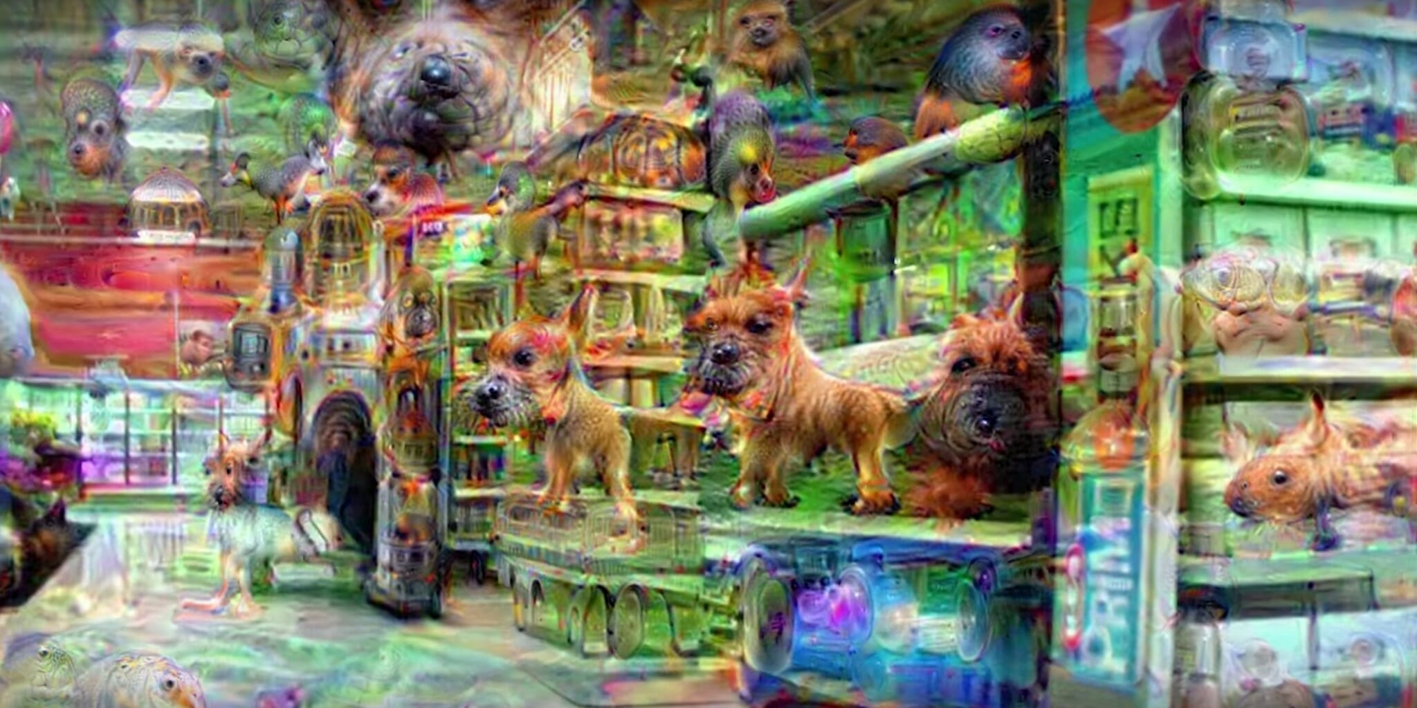 This video is a perfect example of the phenomenon, as DeepDream conjures up strange-looking dogs and fish all over a totally normal grocery store.