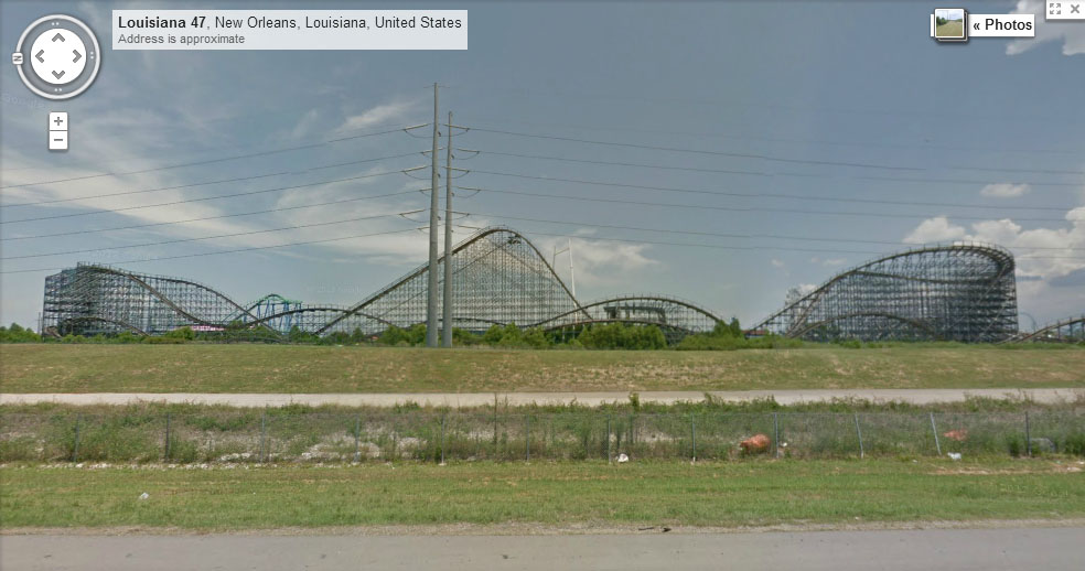 Have you ever driven by a sprawling amusement park during the wintry off-season? Pause for a moment and think about the eerie vibe the silent rides gives off. Motorists driving along Interstate 510 in New Orleans are all too familiar with this feeling—all year long. The roller coaster seen here was part of Six Flags New Orleans, an amusement park that was abandoned and left to rot after Hurricane Katrina devastated the city in 2005.