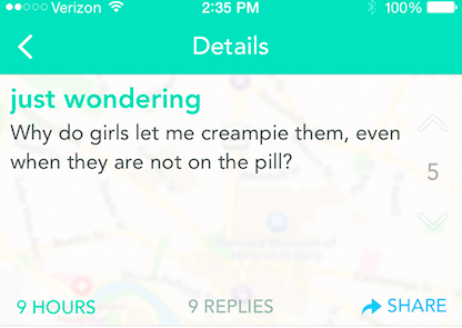 A scan of Harvard rival Yale University's feed makes no mention of the survey either. But it wasn't tough to find evidence of hot, steamy Ivy League fucking on YikYak or the photo-sharing app Yeti.