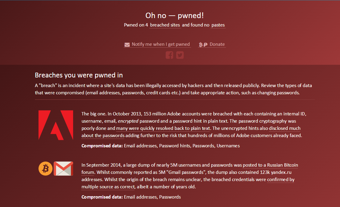 “Often when online services are compromised, the first signs of it appear on ‘paste’ sites like Pastebin,” HIBP creator Troy Hunt explained on his site. “Attackers frequently publish either samples or complete dumps of compromised data on these services. Monitoring and reporting on the presence of email addresses on the likes of Pastebin can give impacted users a head start on mitigating the potential fallout from a breach.”
