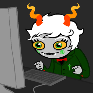 OK, so me and my other friends at school really wanted to get one of my roommates into the comic, but she was always like "ITS TOO LONG," etc. So, what we have been doing gradually over the last semester is reading out loud THE ENTIRE THING to her! It is actually super super fun to do with a group of friends; we all get our "signature characters" and do lame voices, and it is a lot of fun to read as a group! So, uh, if you happen to have a gaggle of obnoxious Homestuck friends and want to get into it, that's a really fun way to do it. ([By the way], my "signature voices" are Karkat, Vriska, Caliborn/Calliope, and Meenah. We all switch off but my friend Sean does the most HILARIOUS Jake voice you have ever heard. It sounds like JFK from Clone High.)