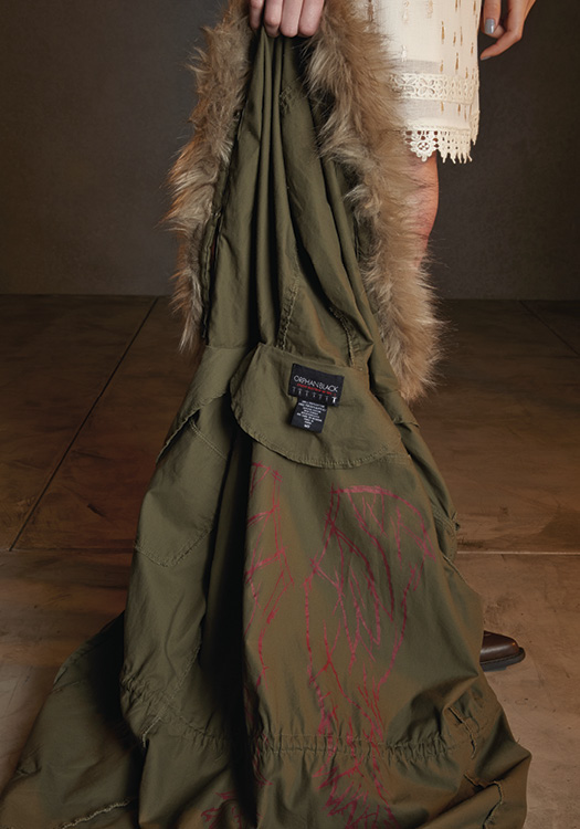 “We are obsessed with Orphan Black here at Hot Topic, and are ecstatic to be given the opportunity to work with the amazing team at Temple Street to design a collection inspired by the four main clones—Sarah, Cosima, Alison and Helena. The detail in each clone’s outfit is so tied to her character and personality that you have to look more than once to catch everything,” Cindy Levitt, Hot Topic’s senior vice president of merchandising and marketing, said in a statement. “So look closely for embroidered stick figures and zipper pulls, Helena’s wings—even Alison’s glue gun. These pieces were so much fun to create.”