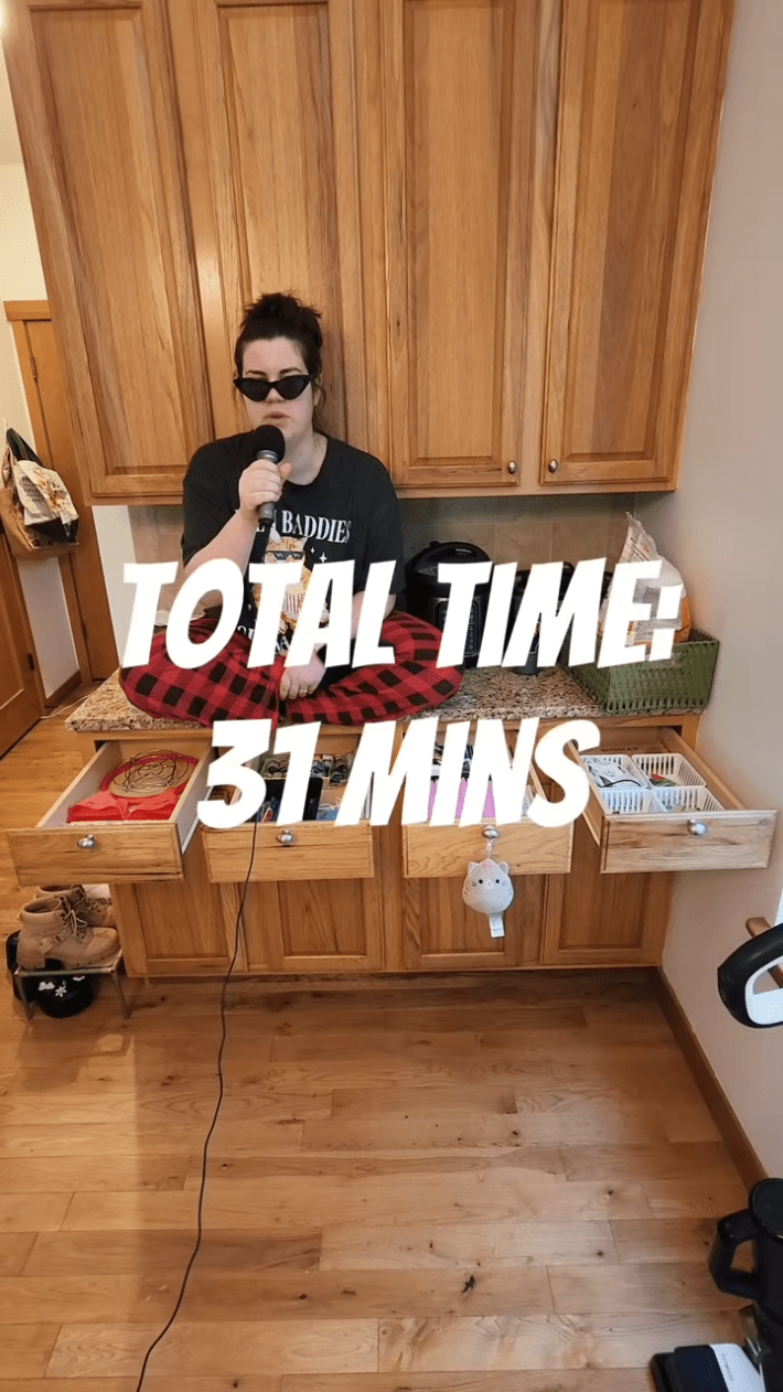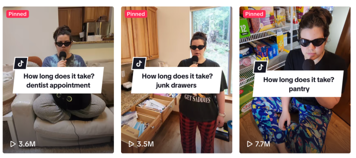 So far, Christi’s completed tasks include making a dentist appointment after three years (9 minutes, 3.6M views), cleaning four junk drawers after 1.5 years (31 minutes, 3.5M views), and cleaning the bottom of her pantry after a year of putting it off (27 minutes, 7.7M views).