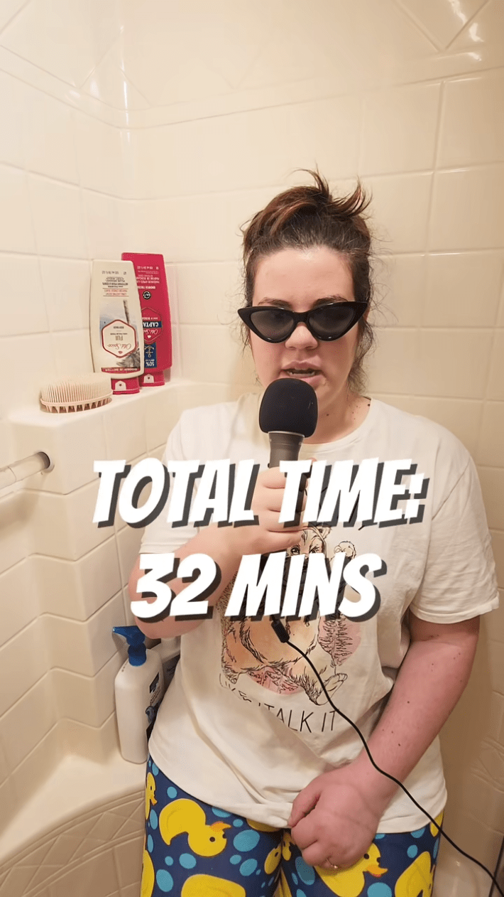 And so, encouraged by her comment section, Newrutzen donned her best lounge clothes and a pair of sunglasses, picked up a microphone, and posted more videos in her series, which she named "How long does it take?”