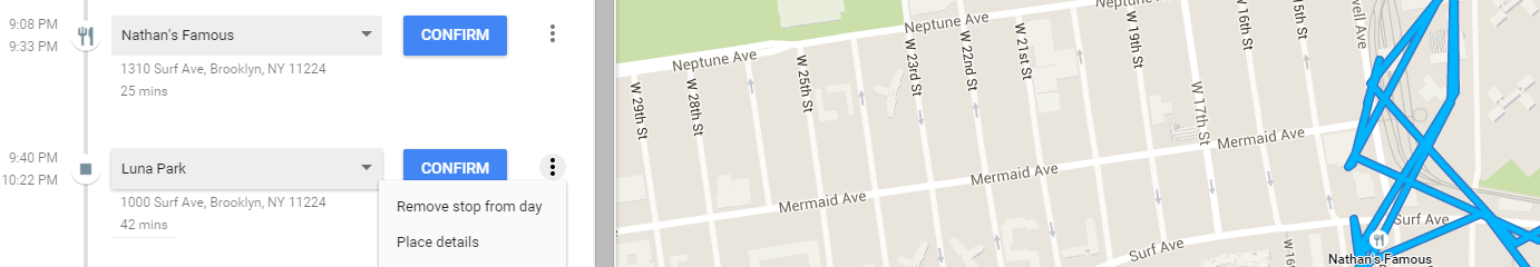First, let's take a look at some of the information being tracked. Here’s a July 26 trip I took to Coney Island in Brooklyn, where everything from my subway ride, my dinner at Nathan’s Famous hot dog restaurant, and then the amusement rides I went on in nearby Luna Park are tracked precisely down to the minute.