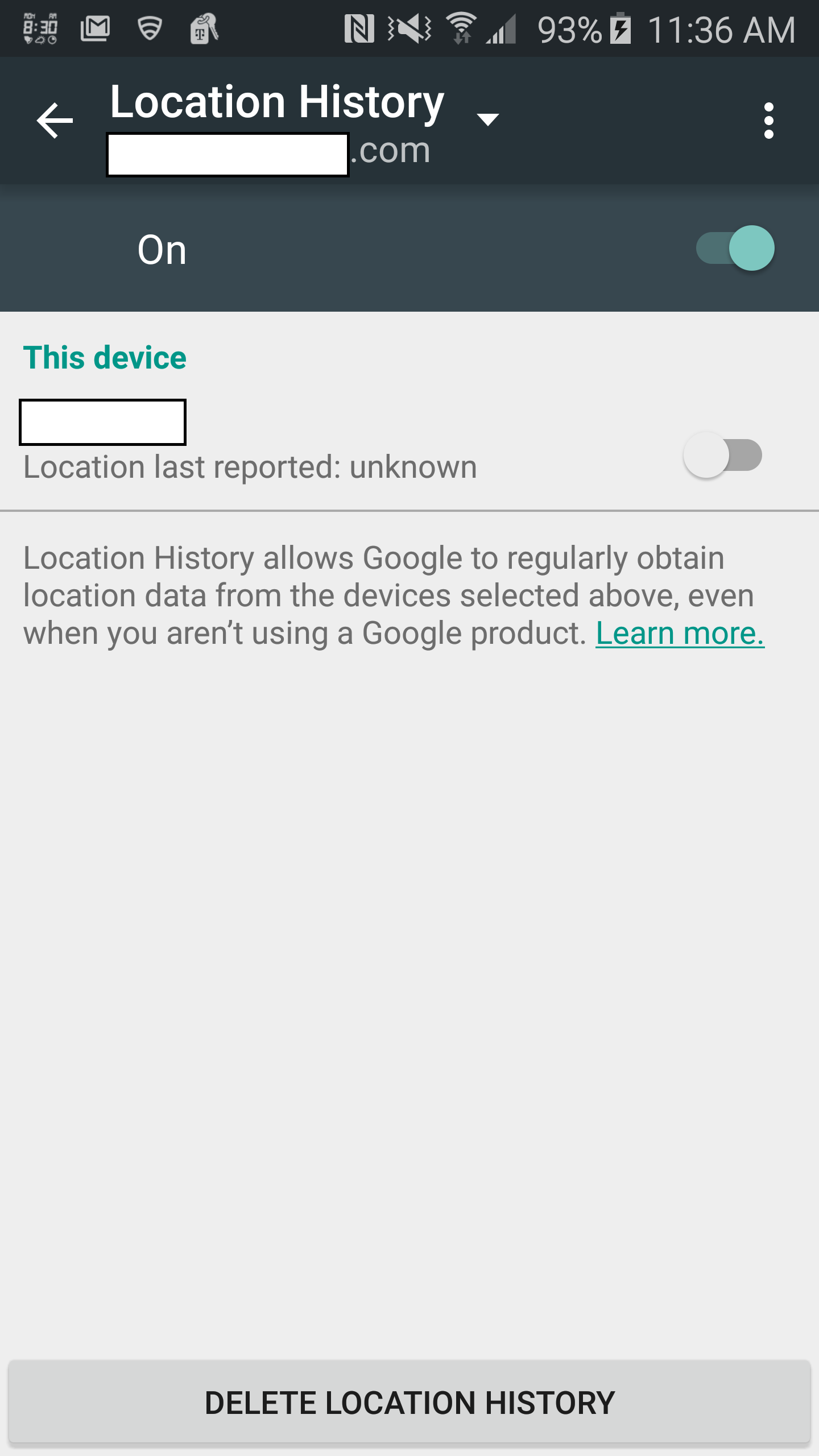 You can delete your location tracking history entirely by navigating to the Location History tab in your settings on Android phones from 2010 or newer. A clear “DELETE LOCATION HISTORY” button is available at the bottom of the first tab. You can also turn off future location tracking from being recorded here.