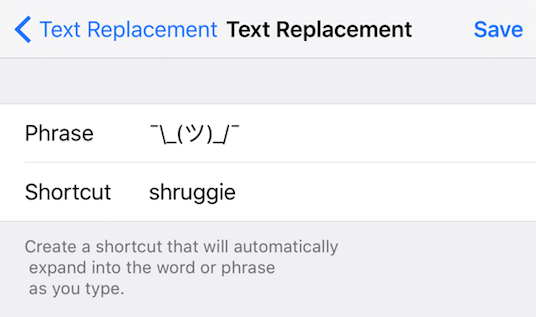 Thanks to the wonders of autocorrect it is possible to create a shortcut that will automatically produce a shrug emoji without the need to copy and paste it every time.