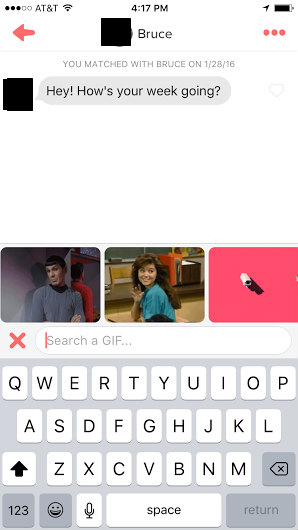 Now that you know how to send a GIF on Tinder, let's cover when it is appropriate to send a GIF on Tinder. People often use GIFs as a way to convey reactions. Are you amused, delighted, or disgusted at something a Tinder match has said? Simply search for the corresponding GIF and send away.
