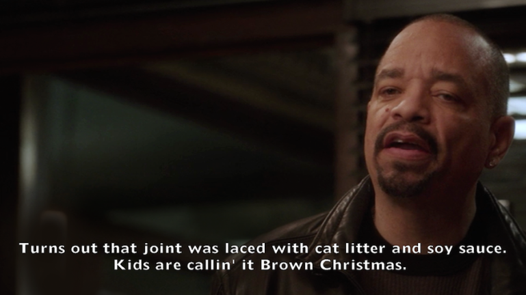 “Turns out that joint was laced with cat litter and soy sauce,” says T’s NYPD detective in one popular screengrab. “Kids are callin’ it Brown Christmas.”