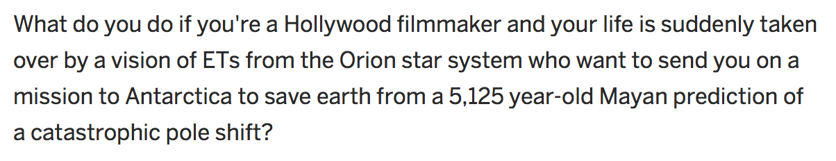 Milton’s Secret may yet see the light of day and is in no way dishonest about its intentions. What differentiates Flanagan’s NEO Neurophone, Edwards’s “Arkatron,” and Sheetz’s trip to Antarctica to save the world is that the justification behind them is either highly dubious or just outright impossible.