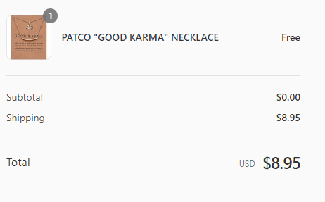 But the necklaces, which it claims are valued at $29.95, are each on "sale" for zero dollars. That's right, they're free—plus shipping. The Daily Dot put in address information for locations on opposite coasts of the United States and each time shipping for the delicate lead-tin-alloy necklaces was calculated at $8.95.