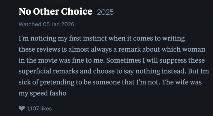 Either way, Harlow (or some genius on his PR team) has logged 568 remarkably diverse films as missionaryjack, including movies new and old, arthouse and blockbuster. You name it—Harlow's seen it, and there's a tiny little poem to sum it all up for you on his Letterboxd profile.