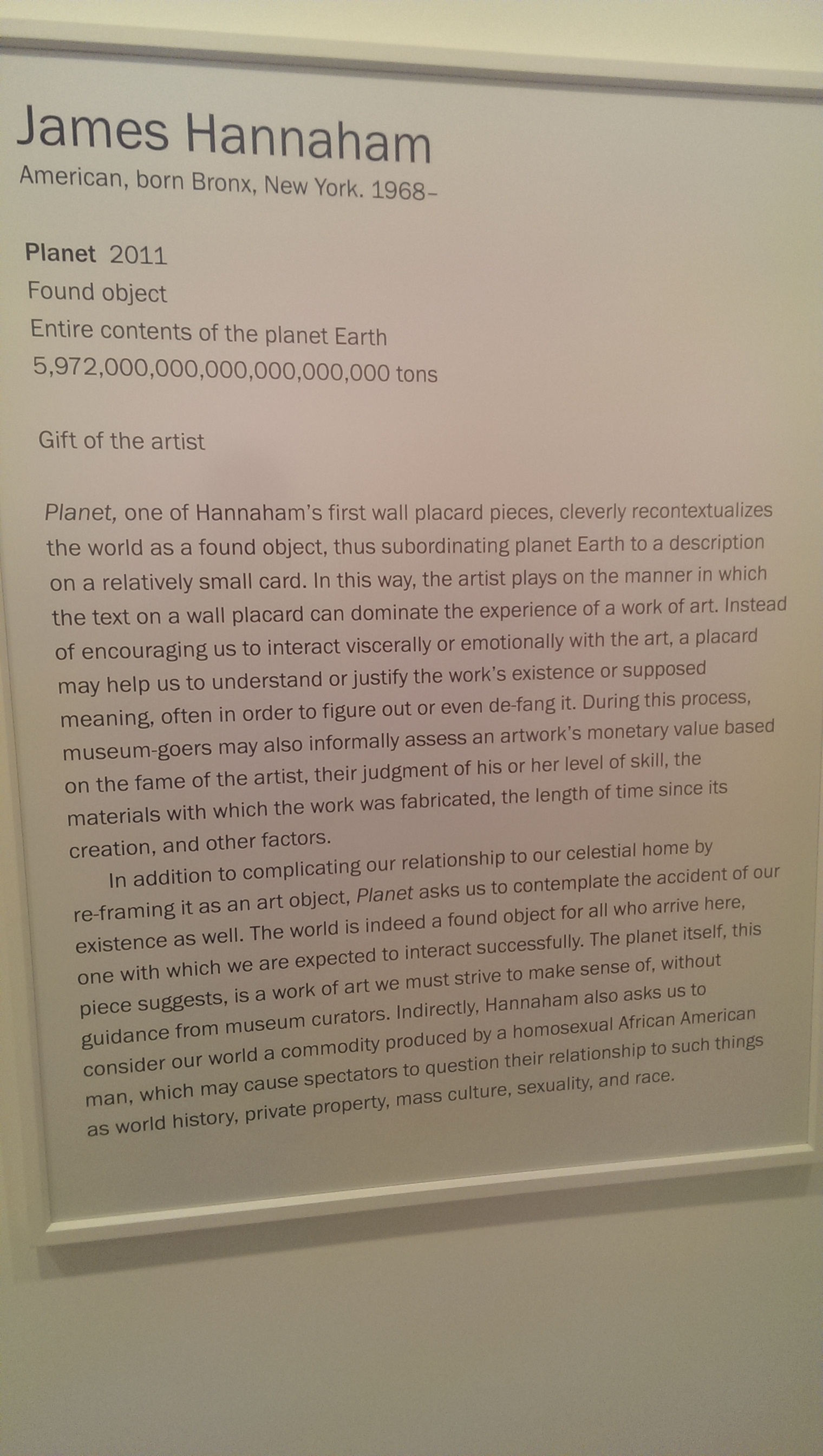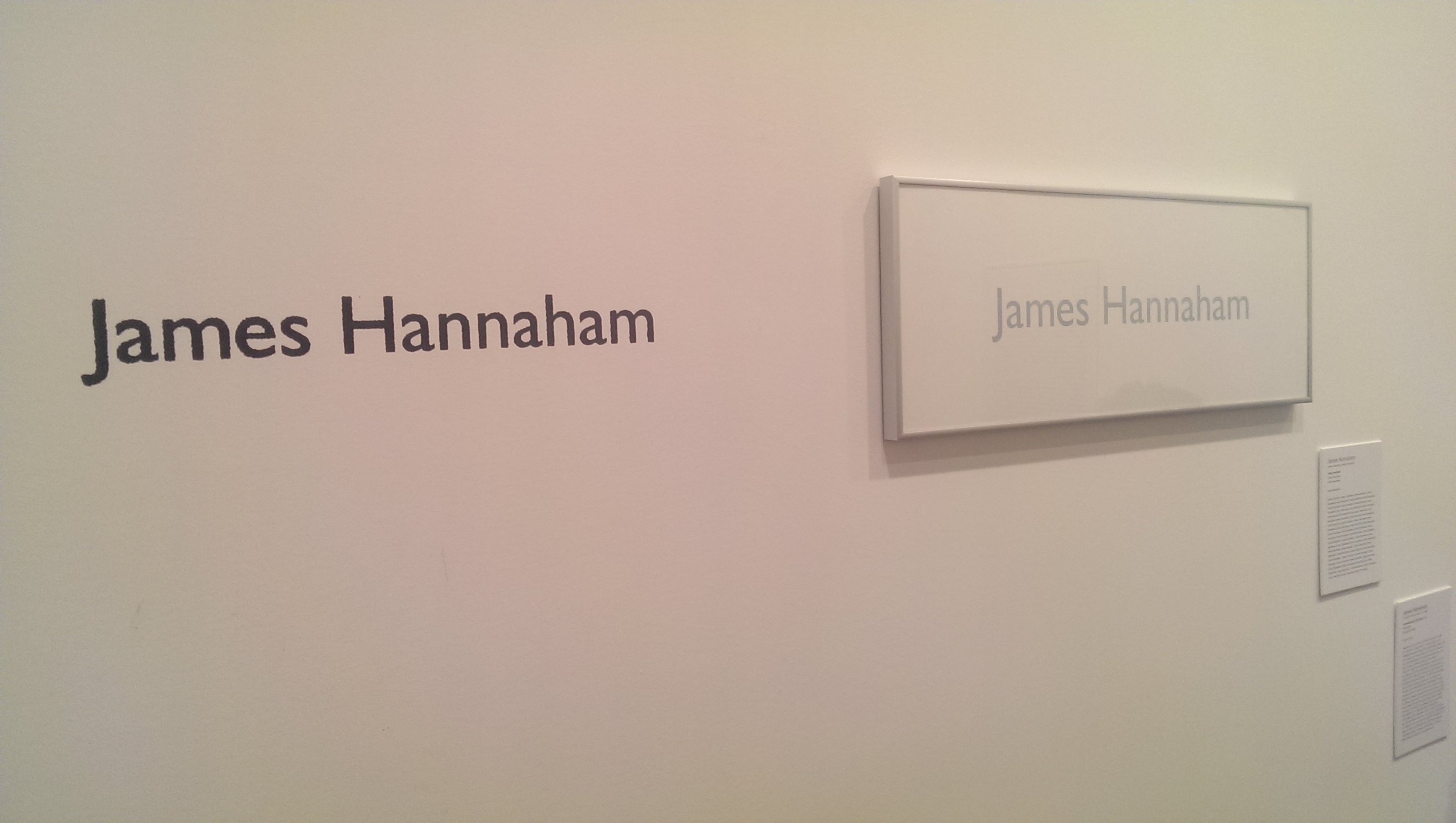 In that sense, “Card Tricks” is all context and no substance, a way of “dematerializing” art, as Hannaham had it. He mocks the pretension of the gallery world by claiming the planet Earth as a “found object,” prints a paragraph called “Squinting Person” in miniscule type, oversells his background as a Bronx-born gay black man to score identity politics points (or limit his message), and creates a dizzyingly meta piece using just his name.