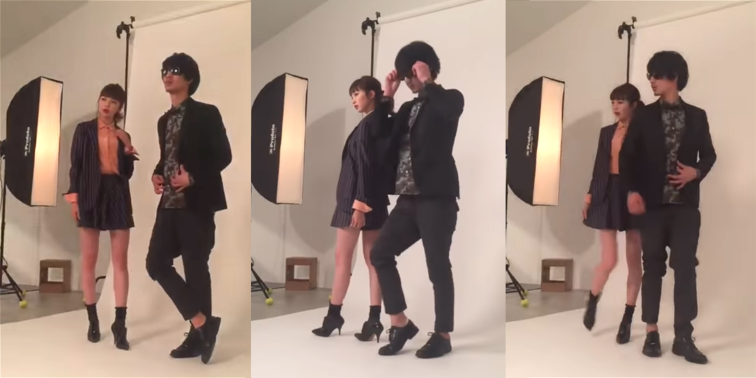 The female model, Mibuki Shimada, posted the video on Twitter and wrote that it was hard not to laugh as her male costar stayed frozen in his "cool pose" while an assistant tried to pull his pants back up. Even though everyone on set was choking back laughter, he just kept going, like a total pro.