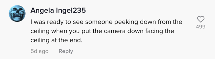 "I was ready to see someone peeking down from the ceiling when you put the camera down facing the ceiling at the end," one commenter wrote.