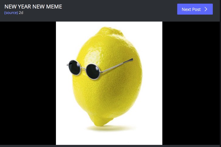 But on the first day of 2017, John Lemon rose from the dead. On Reddit's r/dankmemes, a user called eternallysexual submitted the lemon, facing in the other direction, under the headline "New Year New Meme":
